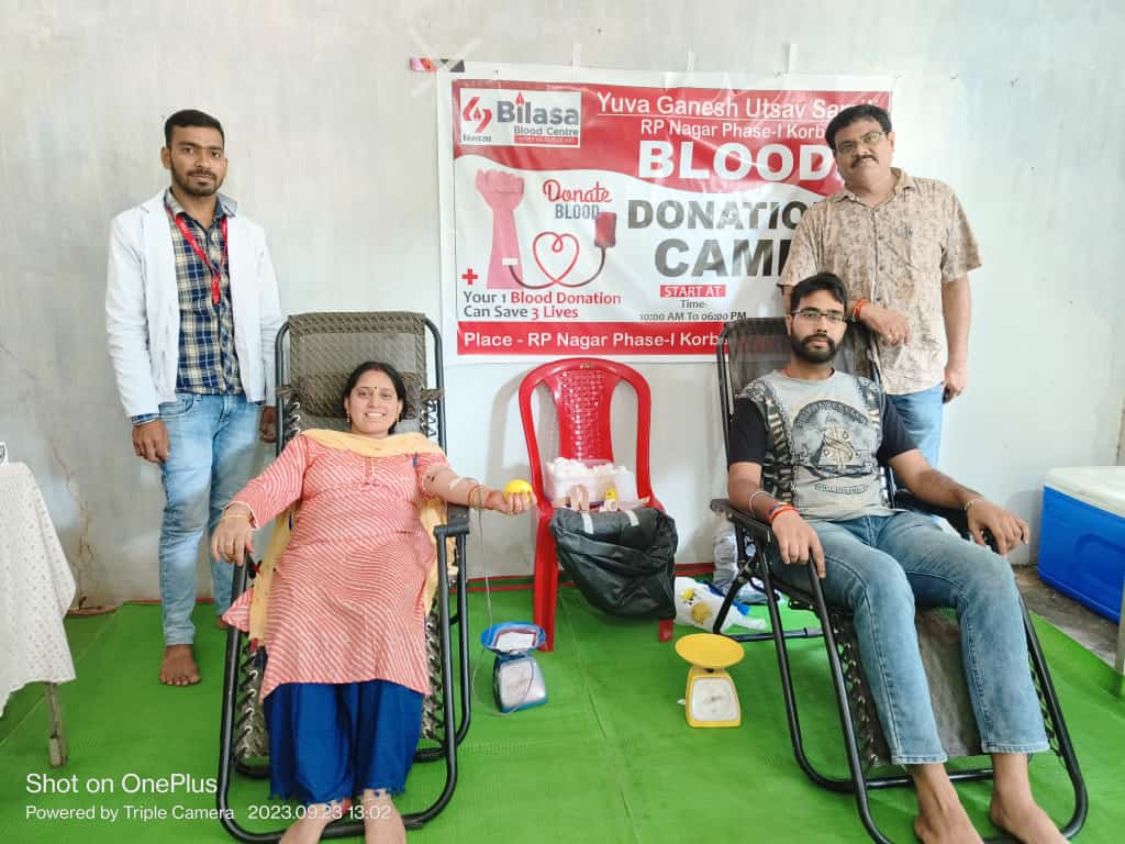 अनूप पासवान/कोरबा.सेवा सुरक्षा संस्कार के धेय्य को पूरा करने के उद्देश्य से 23 सितंबर को युवा गणेश उत्सव समिति निहारिका एवं विश्व हिंदू परिषद बजरंग दल के तत्वाधान में रक्तदान शिविर का आयोजन दशहरा मैदान निहारिका में किया गया।