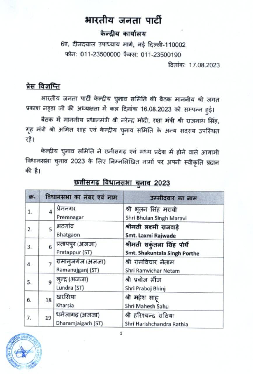 कोरबा.छत्तीसगढ़ में राजनीतिक पार्टियां विधानसभा चुनाव की तैयारी में जोर-शोर से जुट गई है. भाजपा ने छत्तीसगढ़ विधानसभा चुनाव के लिए 21 प्रत्याशियों की सूची भी जारी कर दी है.