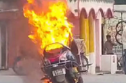 शुक्रवार की देर शाम नयापारा के रहने वाले सूरज नाम के युवक ने अपनी ही एक्टिवा गाड़ी को आग लगा दी. लोगों ने बताया कि युवक ने बन्नाक चौक के बीचों बीच अपनी गाड़ी को खड़ी कर दी और उसमें पेट्रोल डालकर आग लगा दिया. देखते ही देखते एक्टिवा पूरी तरह जलकर खाक हो गई. अचानक इस तरह के घटना से चौक अफरा तफरी मच गई. इस घटना को देखने मेन रोड के दोनों तरफ गाड़ियों की लाइन लग गई. घटना की सूचना मिलने पर सिरगिट्टी पुलिस मौके पर पहुंची और एक्टिवा में लगे आग को बुझाया लेकिन तब तक गाड़ी पूरी तरह जलकर खाक हो गई थी.